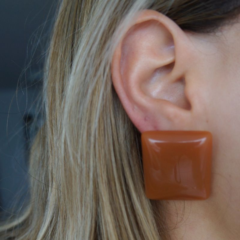 Aros Cuadrados Café ¡Dale un toque geométrico y sofisticado a tu look! Estos aros cuadrados de 5x5 cm en resina color café son el complemento perfecto para quienes aman los diseños modernos y maximalistas.