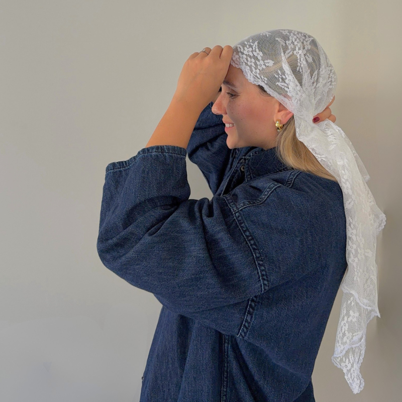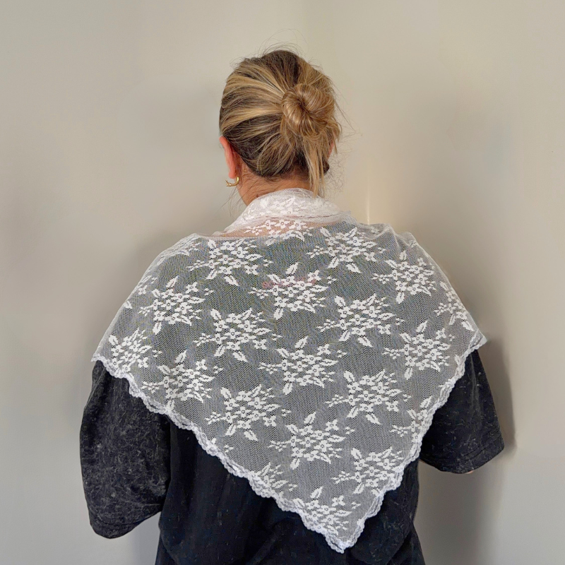 La última tendencia en pasarelas: el encaje. Este pañuelo de encaje en blanco es perfecto para múltiples estilos. Con medidas de 90x90x45 cm, este accesorio tendencia se adapta a cualquier ocasión: úsalo sobre los hombros para un toque elegante, en la cadera para definir tu silueta, alrededor del cuello como bufanda sofisticada, o cuelga en tu cartera como detalle.